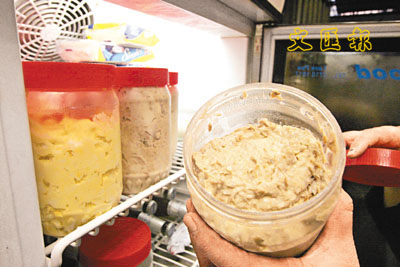 【本報訊】吞拿魚三文治是一般茶餐廳必備的款式,銅鑼灣新添寶茶餐廳負責人表示,他們一般都會將與沙律醬攪拌好的吞拿魚放入樽內,每次約有3至4樽,然後再放入攝氏約5度的雪櫃內,「當其中一樽開啟後,我們便會將它放在水吧位的雪櫃內,其他大約都會在3天左右售完。」以保持食物質素。