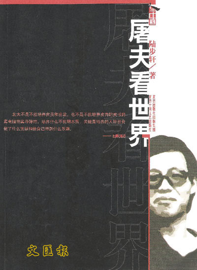 事件一曝光,媒體爭相訪問,陸步軒聲名頓大震,感慨者有之,惋惜者有之,罵者有之。但無論毀譽如何,以前對陸才子不聞不問、棄之拋之的官商當局,聘書如雪片飛至,任憑陸才子揀選。陸才子也「從善如流」,卒之棄賣肉而做了國家幹部,過著再不用「庖丁解豬」的生涯;而且,還將自身經歷,寫了一部洋洋灑灑、厚近三百頁的《屠夫看世界》(北京出版社集團、北京十月文藝出版社,二○○五年七月出版),這部書料會賣個滿堂紅。據說第二本書《小本生意》又將出籠。陸步軒能有今日的地位,固然要多謝媒體的「推波助瀾」和炒作,也證明了他當年的選擇正確,賣肉只是英雄末路的權宜選擇,憑著北大這塊招牌,他終有出頭之日。