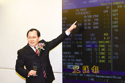 中國基建港口主席周光暉出席該公司上市儀式。 張偉民 攝