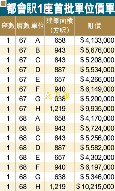 都會(馬+尺)1座首批單位價單 (圖)