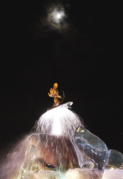 月亮終於穿透烏雲露出笑臉,給迪士尼的夜晚增添動人魅力。劉國權 攝