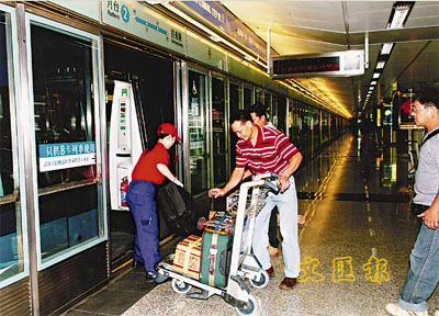 【本報訊】一列與別不同的機場快線列車已投入服務。這列快線列車全長8個車卡,包括增加了一個載客車卡,即7個載客車卡及1個運載乘客行李的行李車卡,由於增多了1個車卡,這列8卡列車較其他機場快線列車長了22米。
