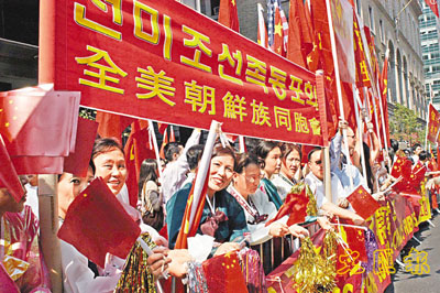 ■五千名美國華人華僑(包括旅美朝鮮族同胞)在紐約歡迎國家主席胡錦濤。