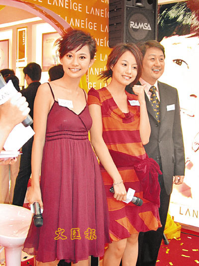 【本報訊】(記者 梁靜儀)鄧麗欣(Stephy)與楊愛瑾(Miki)昨日以嘉賓身份,為某Laneige韓國品牌美肌新店擔任開幕嘉賓,更即場接受化妝師為她們化上秋日彩妝。鄧麗欣化完妝後接受訪問,她表示最初也很擔心不能與韓國化妝師溝通,幸好對方相當風趣。說到男化妝師將化妝掃放近嘴邊,吹走多餘化妝品才為她上妝,有人覺得這樣很不衛生,鄧麗欣笑謂這可能是另一個化妝方法。穿上低胸吊帶裙示範化妝的Miki,表示已貼了膠紙,故不擔心走光。事後她又大讚化妝師所化的眼妝很浪漫,正好符合她的浪漫性格。