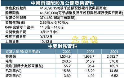 [2005-09-22] 新股透視:雨潤估值具吸引可認購 放大圖片