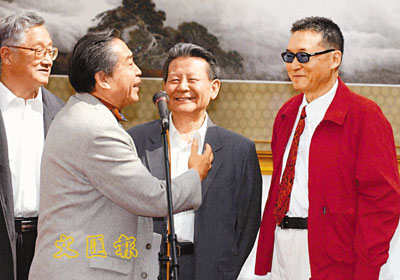 ■22日,李敖(右)與闊別56年的大陸小學同學在北京釣魚台國賓館歡聚。新華社