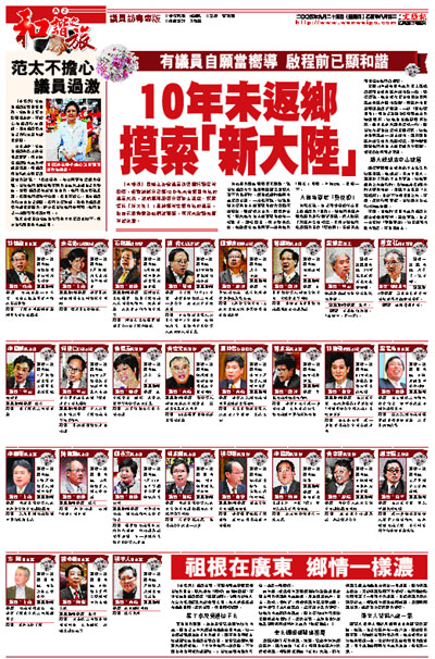 【本報訊】議員訪粵,不但有兩地發展唇齒相依的因素,原來還有「鄉情」這附加價值:不少立法會議員都是「廣東老鄉」,分別在於有人在公在私頻密往來於港粵之間,有人卻遲遲沒有機會回鄉。是次訪粵,可謂鄉情濃厚。