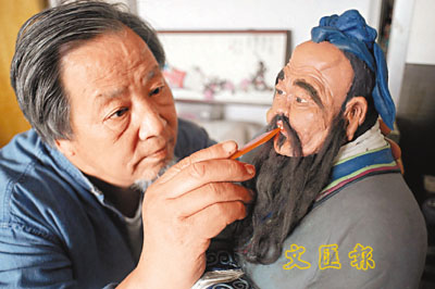 為紀念孔子誕辰2556年,山東濟南的麵塑大師何曉錚精心製作的孔子麵塑於當日完成。該作品將捐贈給有關部門,參加9月28日舉行的祭孔大典。這尊孔子麵塑高0.7米,寬0.4米,歷時2個月完成。圖為麵塑大師何曉錚在精心修飾孔子麵塑。新華社