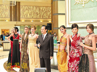 游偉光(中)夥模特兒介紹澳門環宇天下。