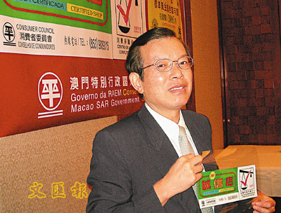 ■何思謙建議訪澳旅客選擇有「誠信店」標誌商舖購物。