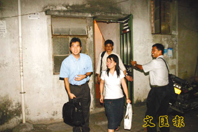 ■陳逸飛(左)與工聯會工作人員往張錦明家探訪。 本報深圳傳真
