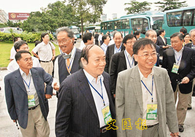立法會議員訪粵之行後,各界均期望社會更趨和諧。圖為詹培忠(前左)、張文光(前右)等本月25日在內地訪問參觀。資料圖片