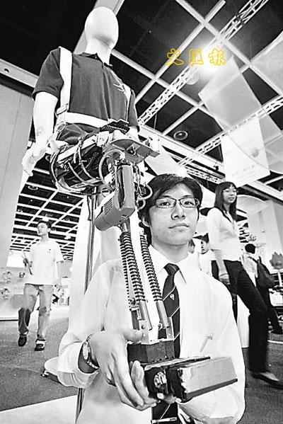 禤彥勳發明的機械義肢成本只需2000多元,而且能為義肢注入支撐力,突破性發明令他獲公眾選為「我最喜愛的創意生活發明」青少年組冠軍。 羅蘭蓉 攝