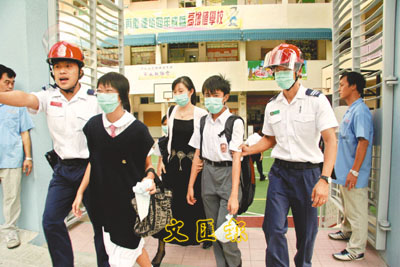 三名不適男女學生由護理員陪同送院。 覃少林 攝