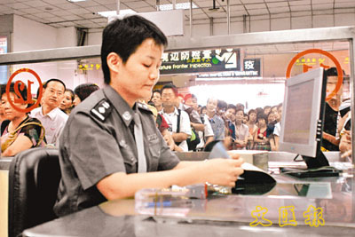 今年38歲的劉搖東,在皇崗邊檢工作已超過了13個年頭,其所在的該站13隊主要負責出境驗放工作,該隊今年曾被公安部評為優秀基層單位。但是當談起自己的家庭時,劉搖東顯得有些窘迫。「說實在話,在我的記憶裡好像只有今年春節時才放了一個相對安穩的假期,即使是休息也屬於機動,經常要回到站裡工作。」據他透露,由於每到節假日總要加班,更沒有時間陪孩子去玩。「本來還答應孩子說,暑假時帶孩子出去玩一下,結果一直沒能成行。每當值勤時看見一家家的人歡天喜地過關旅遊,心裡很不是滋味。」