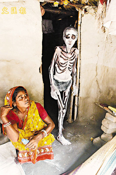 哈爾達主要靠在節日活動中扮鬼嚇人,每次演出他可以賺到40至50盧比(約8港元),但他的太太指出:「他把大部分賺得的錢都用在抽大麻煙和賭博等壞習慣上。」 ■綜合外電消息