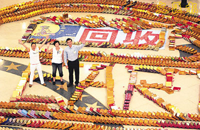 ¡@Àô«O¤¤¬î°©µP°}¥Ñ10,000Ó¤ë»æ²°²Õ¦¨¡A°©µP°}¥H¤ß§Î¹Ï®×¤Äµe¥~§Î¡A¤¤¶¡¬ä¥X¡u±Ï±Ï¦a²y¡v¡]Save Our Earth¡^ªº^¤å¦r¥y¡A¤ñ³ëÀ³µ½«Ý¸ê·½¡A¦@¨ÉÀô«O¤¤¬î¡CÀHµÛ¹ù¨q¥V¤j¤M¤@´§¡A°©µP°}´¦¶}§Ç¹õ¡C¹ù¨q¥Vªí¥Ü¡A´Á±æ²£¥Íªº°©µP®ÄÀ³¡A¥i§â¤ÀÃþ¦^¦¬ªºÀô«O·NÃѫŴ¶}¥h¡A¤ä«ù®a©~¼oª«·½ÀY¤ÀÃþp¹º¡C¤£¹L¡A¬F©²ìq¦~©³±À¥Xªº¡u³£¥«©TÅé¼oª«ºÞ²zµ¦²¤¡v±N©ö¦W¬°¡u¼oª«³B²zºÞ²z¤jºõ¡v¡Aµy«á±N·|®i¶}¿Ô¸ß¤u§@¡C¹ù¨q¥V³zÅS¡A·í¤¤±N·|¯A¤Î°ï¶ñ°Ïªºµo®i¡B¼oª«¦p¦ó³B²z©M²£«~³d¥ô¨î¡A¥H¾ã¦Xp¹º¨Ó³B²z©TÅé¼oª«¡C¦o¤SºÙ¡A©TÅé¼oª«¬O¤@Ó´`Àôªº¸gÀÙ¡AY¸gÀٰ餣§¹¦¨¡A¦³«Ü¦h¤H±N¤£·|©ú¥Õ¬F©²¨s³º¦b°µ¬Æ»ò¡C