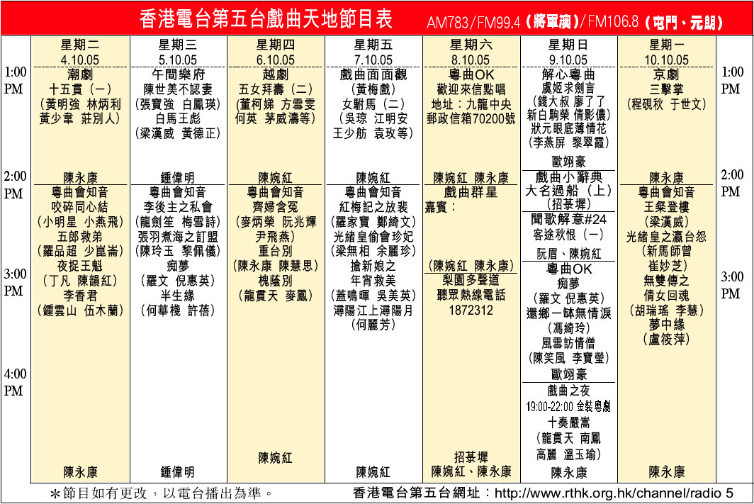 [2005-10-04] 香港電台第五台戲曲天地節目表
