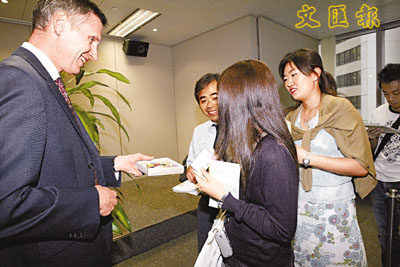 新任證監會主席韋奕禮昨日會見香港傳媒,並派朱古力恕H。