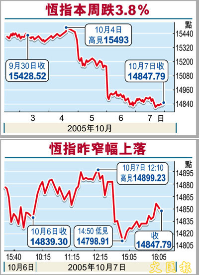[2005-10-08] 港股全周累跌580點 放大圖片