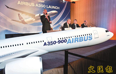 法國空中巴士公司昨日正式宣布生產A350-900型飛機的計劃。法新社