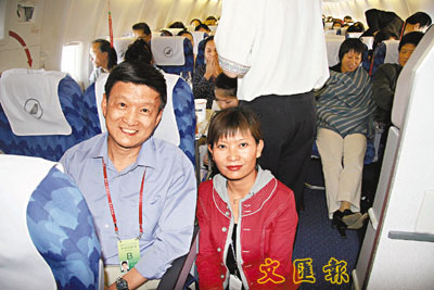 中央代表團藝術團副團長宗立人在南航新疆公司客機上。