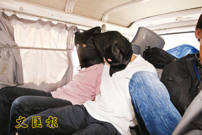 疑犯被蒙頭帶署調查。 蔣焯文攝