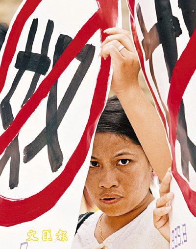 ■高捷弊案調查小組7日成立。圖為台灣國際勞工協會聲援「泰勞抗暴」行動,部分外勞拉起標語來表達心聲。 中央社