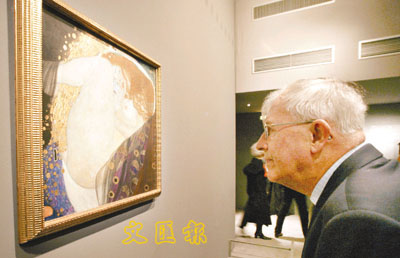 巴黎大皇宮美術館內,這位老人家深深被牆上畫——還是畫中人——吸引?(法新社)