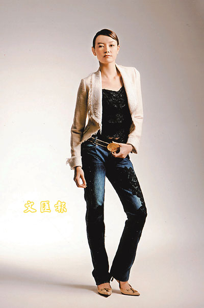 剪裁貼身的白色羊毛外衣,衣領及手袖邊均展現布料的自然磨損,配襯貼身牛仔褲,瀟灑有型。