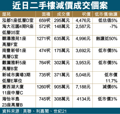 近日二手樓減價成交個案 (圖)