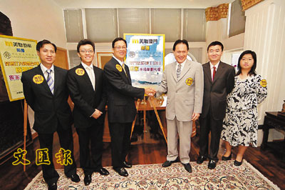 美聯主席黃建業(左三)與卓能主席趙世曾(右三)出席荃灣汀九橋景灣及澳門路環地王項目的委託簽約儀式。周穎 攝
