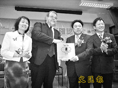 世衛社區安全推廣協進中心主席溫思朗昨由瑞士遠道到大埔,向大埔區議會頒發安全社區牌匾,正式確認大埔為全球第90個安全社區。