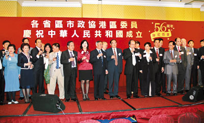 在內地各省區市出任政協的香港委員有近1,100人,由於各位委員在香港社會及各自的界別內具有相當影響力及聲望,是維護香港穩定繁榮的一支重要力量,所以中央駐港機構樂於見到委員們透過某一組織形式,為發揮影響力提供平台,周三晚各地委員聯手舉辦國慶活動,僅屬初試啼聲。聯歡會由戴德豐、林樹哲、蔣麗芸、陳清霞、杜惠愷等負責具體的籌備工作。而他們的工作表現,獲得王永樂部長公開讚揚。王永樂還親為晚會致辭環節擔任司儀;文藝表演節目及祝酒儀式部分,則交給了鳳凰衛視的吳小莉等主持。