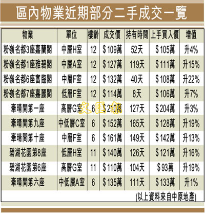 區內物業近期部分二手成交一覽 (圖)
