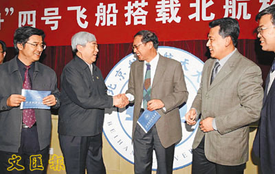 ■北京航空航天大學是中國航太事業的中流砥柱,「神四」總設計師戚發軔(左二)、總指揮袁家軍(右二)均自該校畢業。