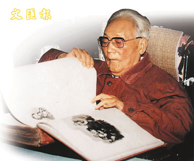 巴金翻看將要捐贈的外文圖書。本報上海傳真