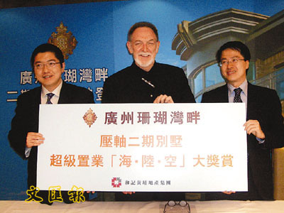 和黃地產中國市務部總經理譚健旭(左)稱,廣州珊瑚灣畔二期下月推售。吳文爾 攝