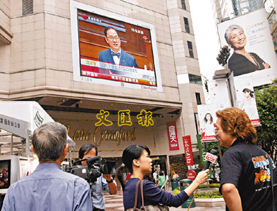 許仕仁宣傳政改不忘捧一捧傳媒,盛讚傳媒對香港社會的客觀報道。 資料圖片