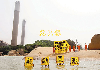 ¡@¡i¥»³ø°T¡j¡]¹ê²ß°OªÌ¡@±ç±Òè¡^ºñ¦â©M¥ªººXÄ¥¡u±mi«i¤h¸¹¡v¡A¦b¬Q¤Ñ§â¤Q¼Æ¦ìºñ¦â©M¥¦¨û°e¨ì«C¤s¿U·Ñµo¹q¼t«e¡A§â¤@¤ä¶H¼x¼ä²b¯à·½ªº·¨®¡A¾ð¥ß¦bµo¹q¼t«e¡A¨Ã©Ô°_¼g¦³¡uClear Energy Now¡vªº¤j«¬¾îÃB¡F¥t¥~4¦ì¤À§O¨Ó¦Û»´ä¡Bµá«ß»«¡B®õ°ê¤Î¿D¬wªººñ¦â©M¥¦¨û¡A¦b·mÅu®É¤À§O¦b®ü¤¤¤â«ù¡u¹ª¡v¡B¡u°Ê¡v¡B¡u·¡v¡B¡u¼é¡v4¦r¾îÃB¡An¨D¦b´äµo®i·¤Oµo¹q¡A´î¤Ö¿U·Ñµo¹q¡C
