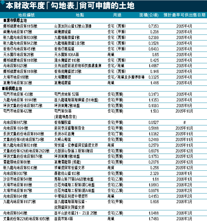 [2005-10-22] 本財政年度「勾地表」尚可申請的土地