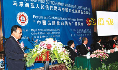 馬來西亞海鷗企業有限公司總裁陳凱希今日在由馬來西亞人民信託局和中國-東盟博覽會秘書處舉辦的「中國品牌走向國際座談會」上說:中國商品雖然充斥了整個世界,但缺乏名牌產品,我們願當「中國品牌國際化」在海外的尖兵,為中國品牌效犬馬之勞。