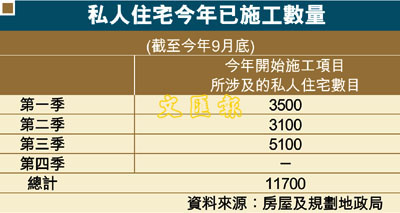 私人住宅今年已施工數量(截至今年9月底) (圖)