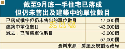 截至9月底一手住宅已落成但仍未售出及建築中的單位數目 (圖)