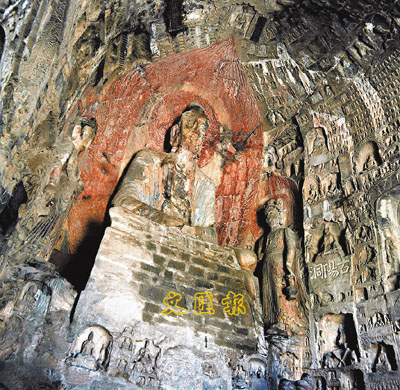 ■圖為龍門石窟古陽洞正壁石刻造像。新華社