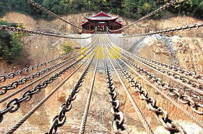 ■紅軍長征博覽城以造景還原反映紅軍長征史實。這是主題公園中大渡河鐵索橋造景。