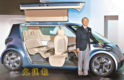 ■日本汽車生產巨人豐田汽車的主席與該廠的燃料電池概念汽車。 法新社