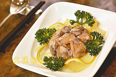 此道菜式由十多隻去殼大閘蟹鉗而成,蟹鉗肉配以花雕酒清蒸而成,味道鮮甜,入口嫩滑多肉。