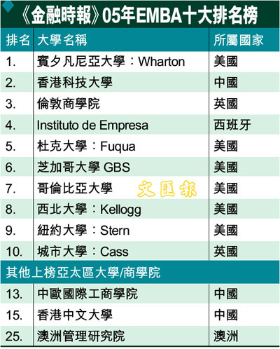 《金融時報》05年EMBA十大排名榜 (圖)