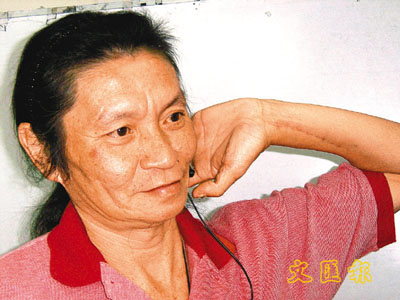 前無線武術指導元寶展示其傷勢。他正等候勞工處判其傷殘程度,以便索取賠償。 本報記者梁嘉儀 攝